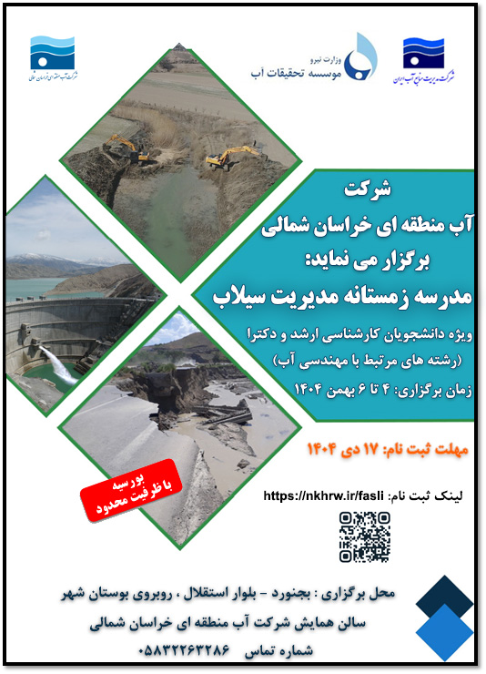 مدرسه فصلی «مدیریت سیلاب» با هدف آشنایی دانشجویان و پژوهشگران با مباحث مربوط به حوزه مهندسی رودخانه و مدیریت سیلاب، شامل مجموعهای از آموزشهای تخصصی، کارگاههای عملی و بازدید از پروژههای مرتبط شرکت آب منطقهای خراسان شمالی خواهد بود.